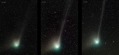 This image shows this rapid development of the comet's tail. At the beginning the tail was "fizzling" a bit to the right, later to the left, while at the end it became concentrated and thin.
